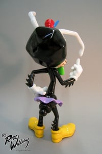 Robert Williams' Coochy Cooty brought to 3D. Numbered series of 2000 pieces. Figure is fully articulating and stands over 9" tall. It has a magnetic flower pot hat and interchangeable right hand gestures-depending on your mood. Officially licensed and approved. Sculpted by world famous artist James "Lucky" Lareau.